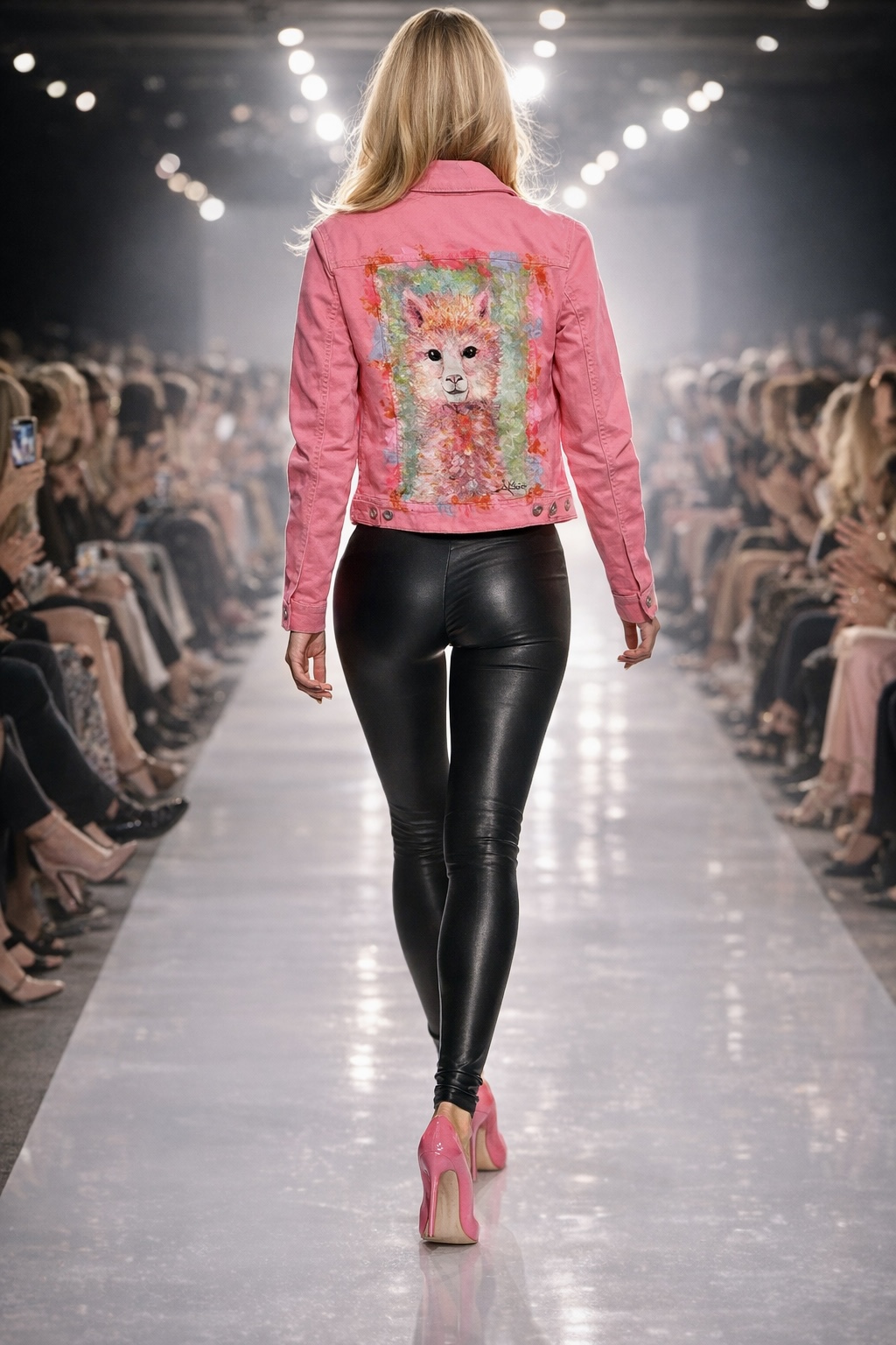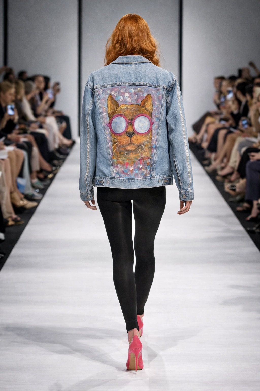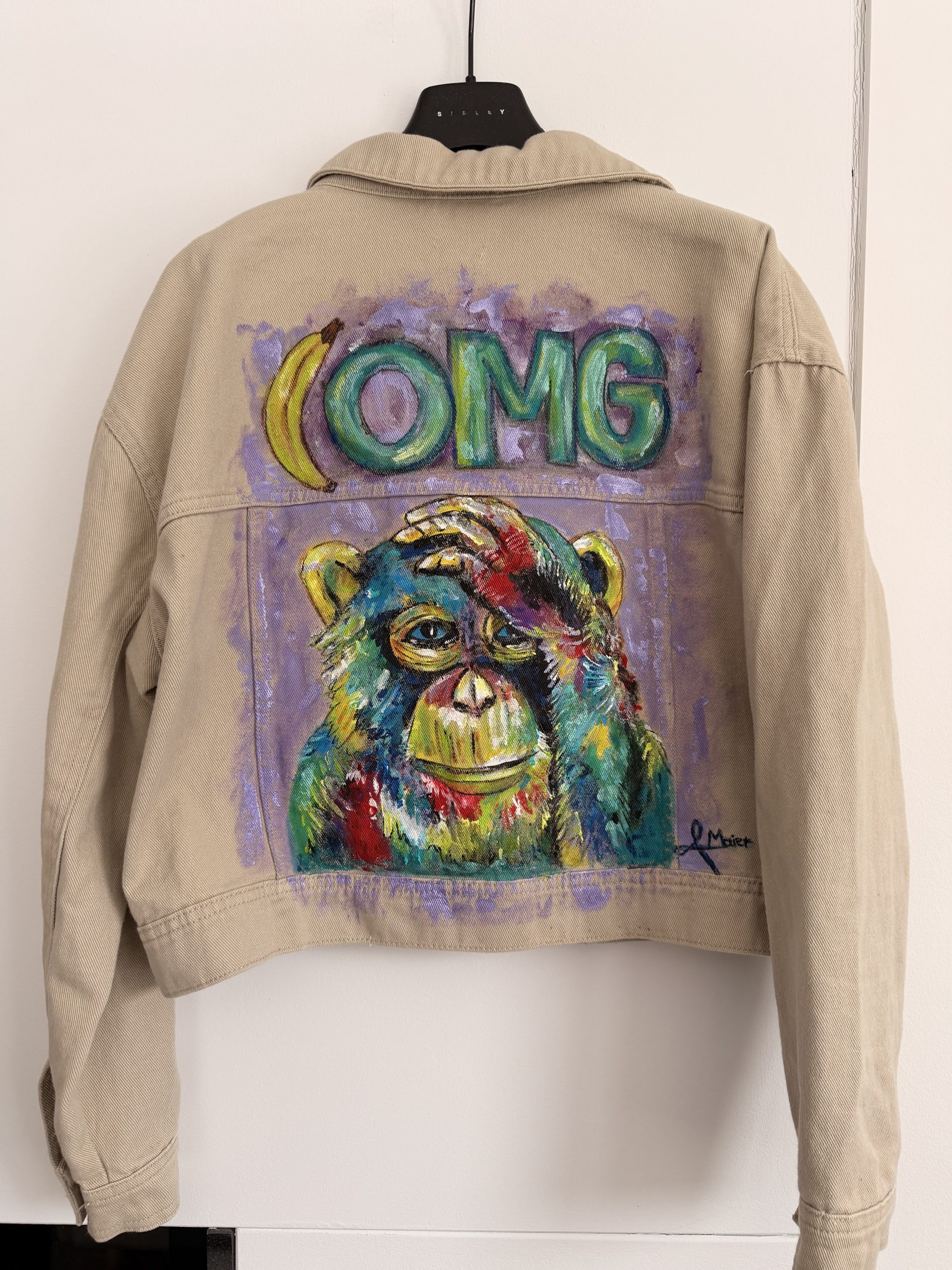 Baige Jeansjacke mit bunten Affen