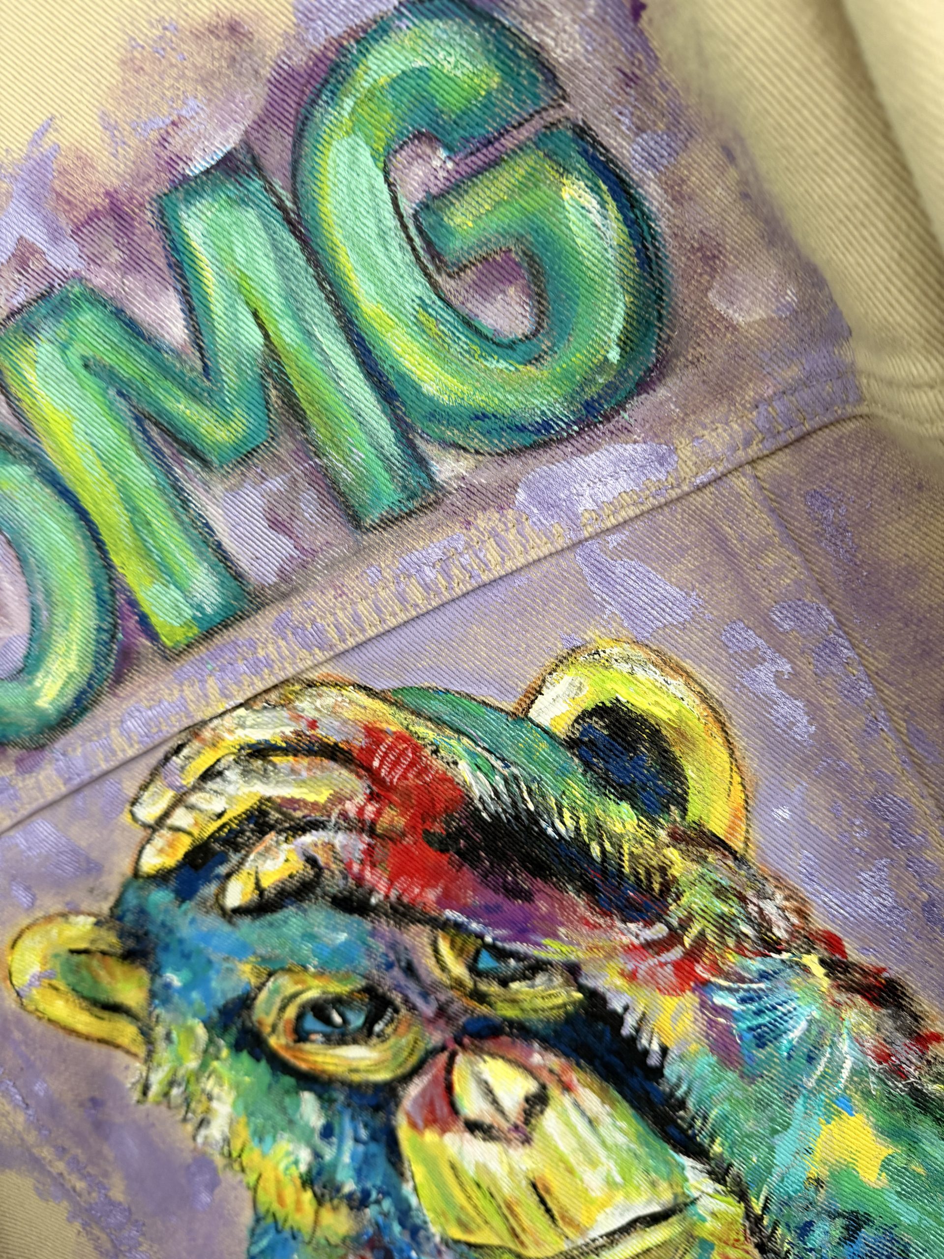 Upcycling meets Art. Eine Baige Jeansjacke in Größe M wurde mit farbenfrohen Textilfarben bemalt. Abstrakte verspielte Kunst aus dem Taunus. Ein Hingucker frei nach dem Motto“ Ein schöner Rücken kann auch entzücken“. Sie ist bis 40 Grad waschbar und ideal für kühlere Sommernächte beim Grillen oder auf einem Weinfest.