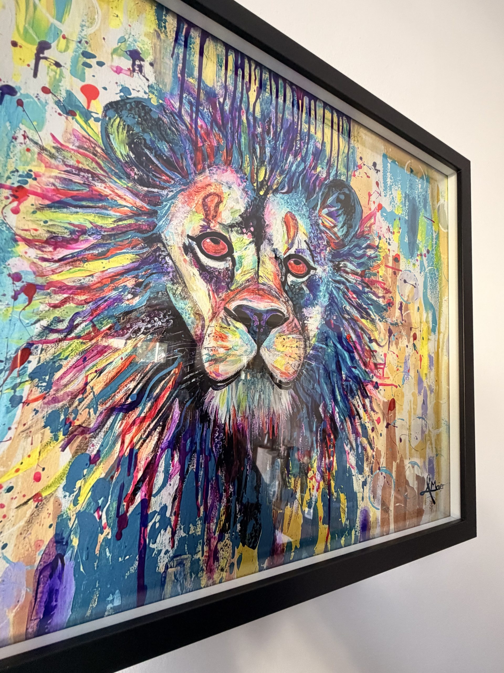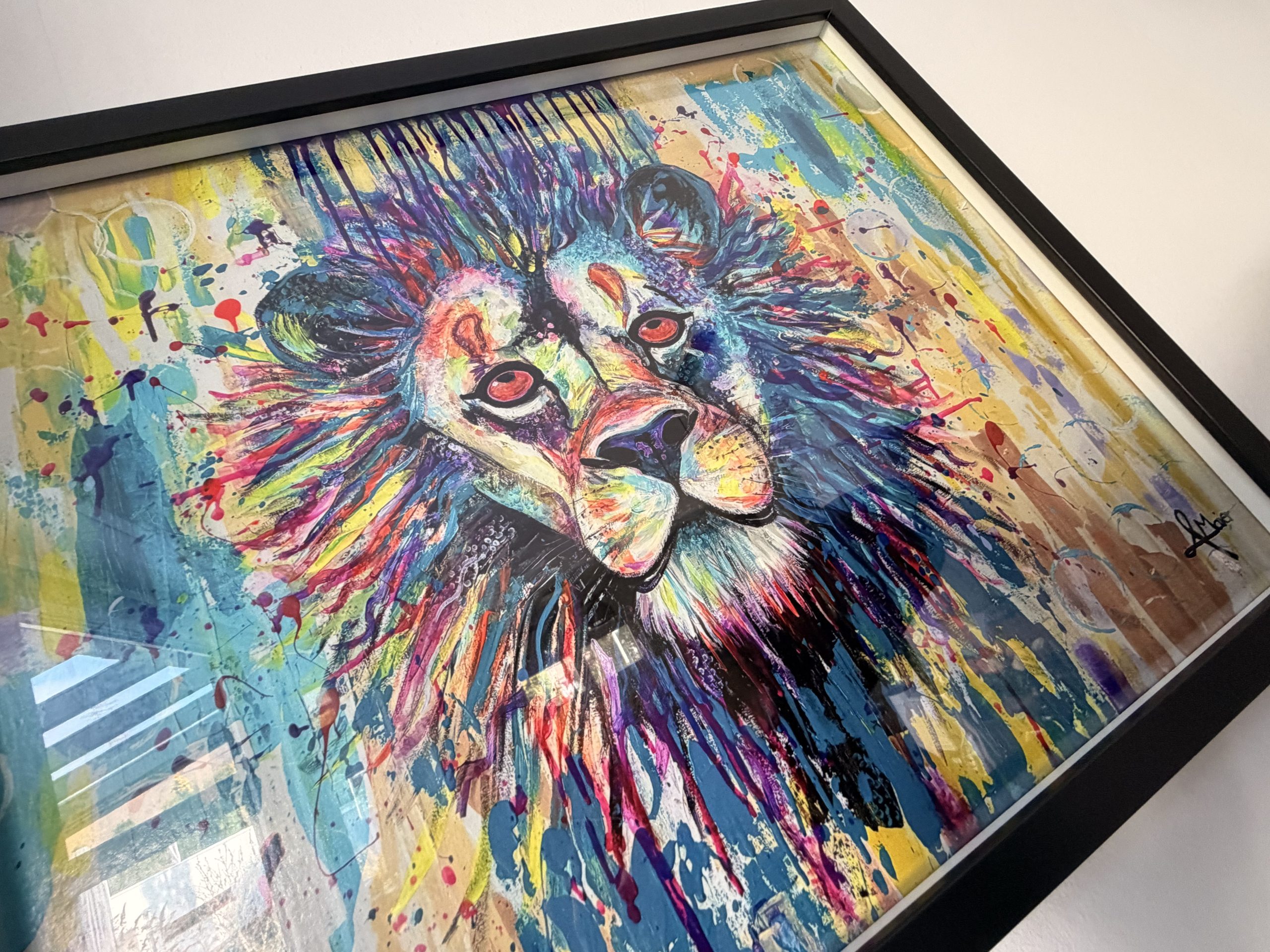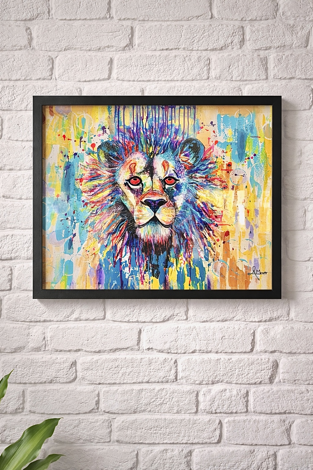 Edelprint im Schwarzen Rahmen – Colorful Lion