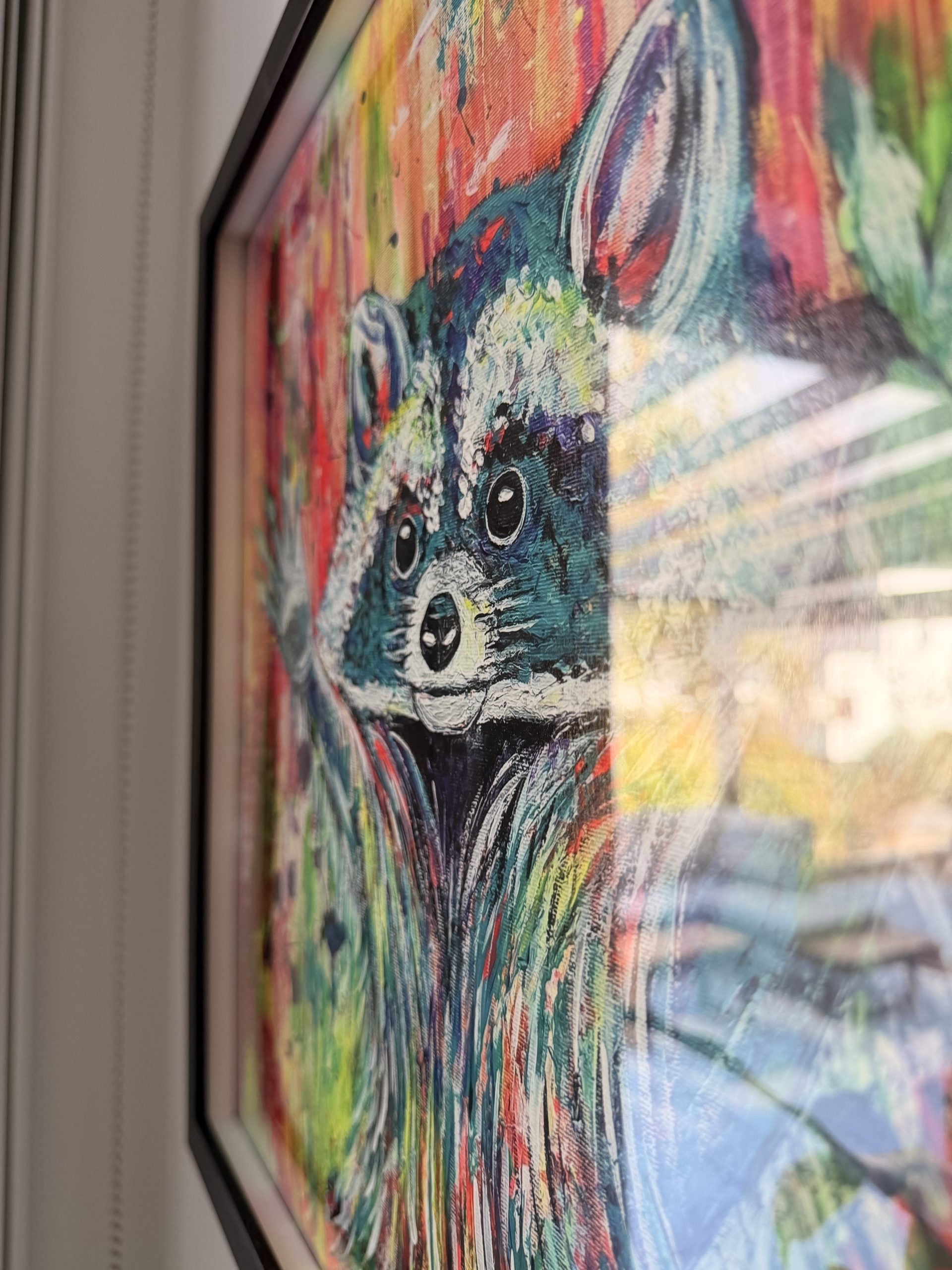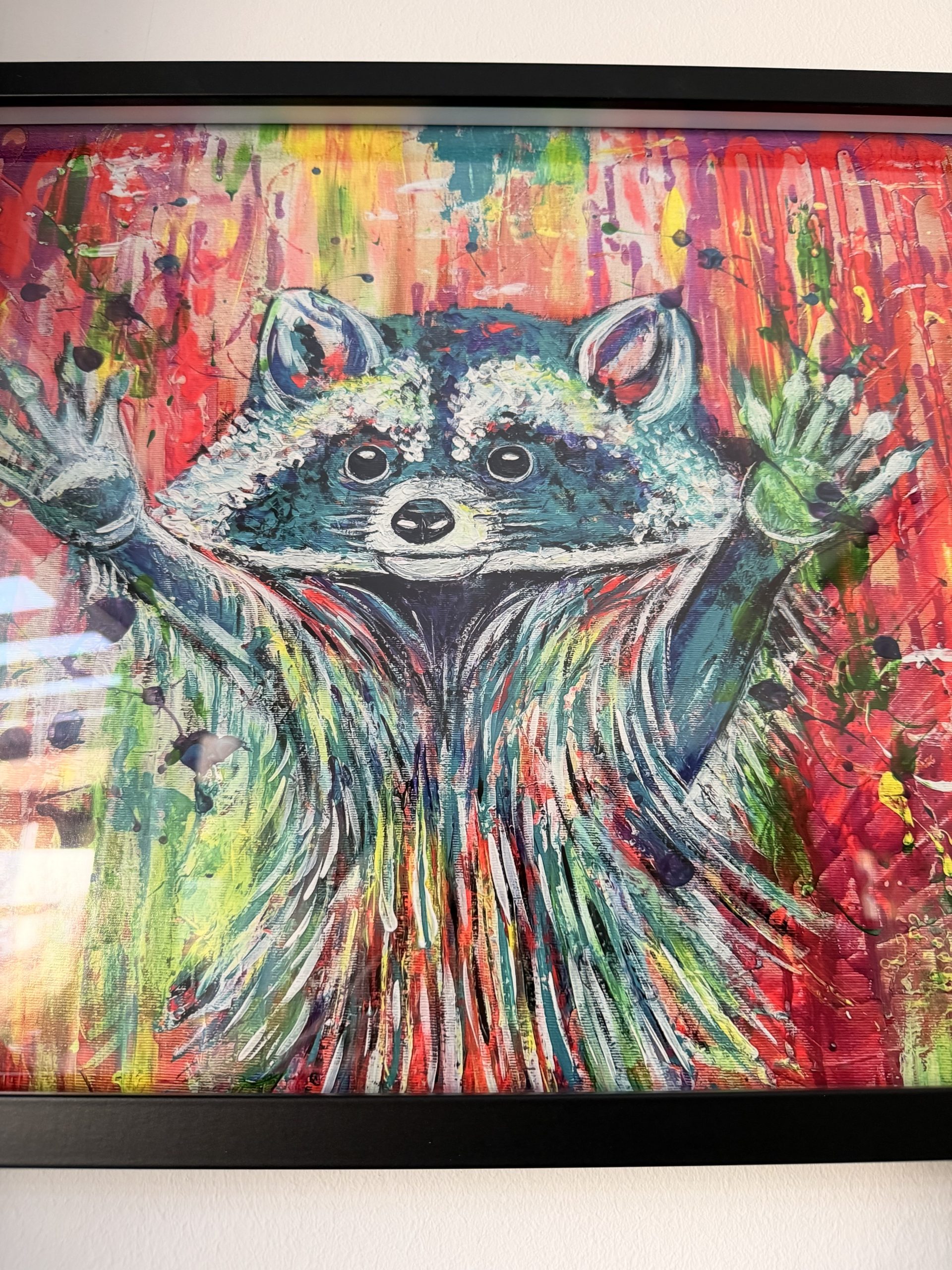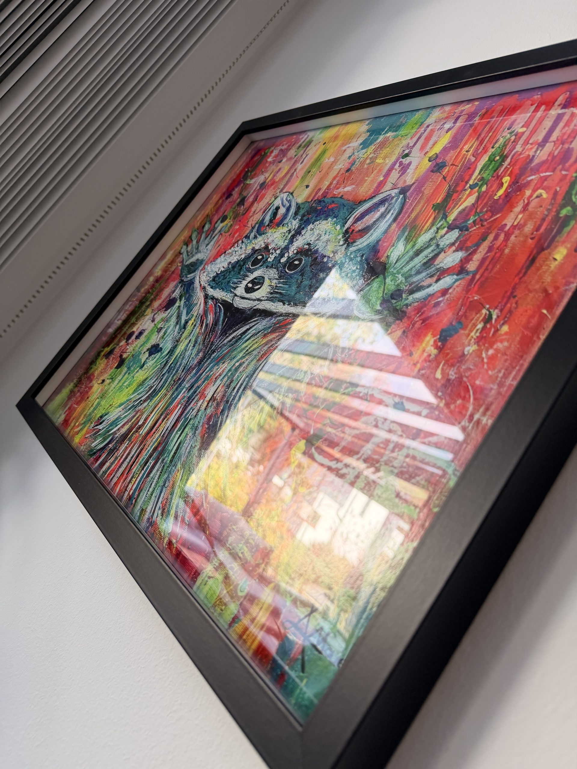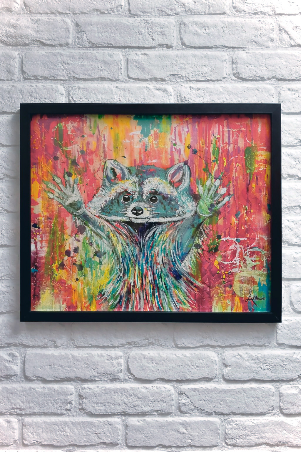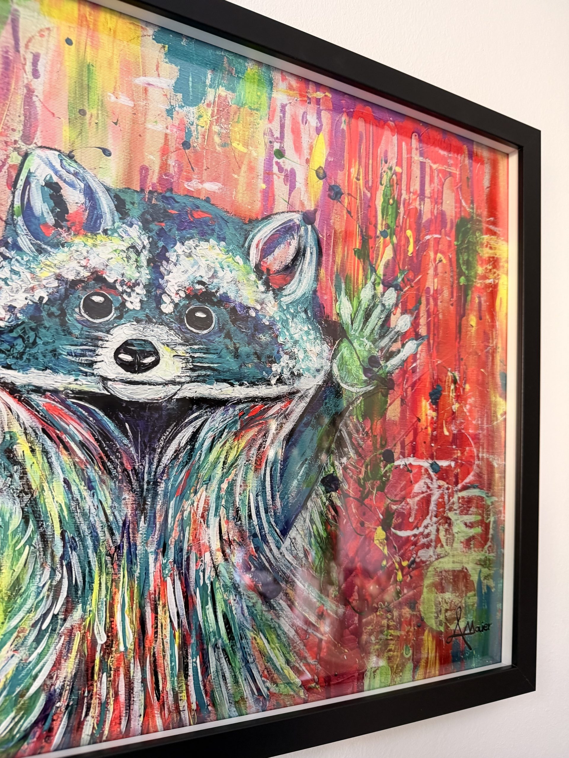 Edelprint im Schwarzen Rahmen – Waschbär Colorful
