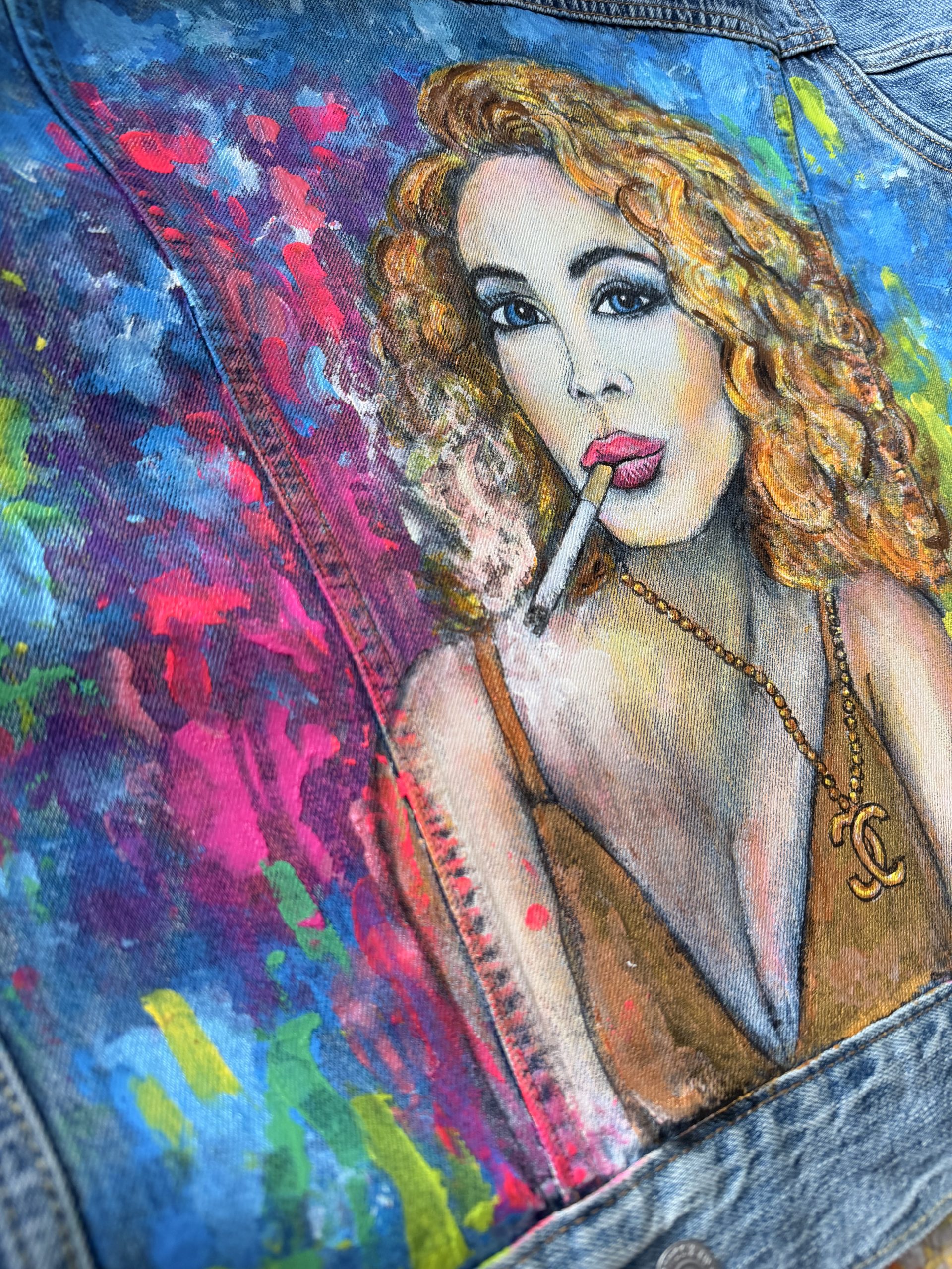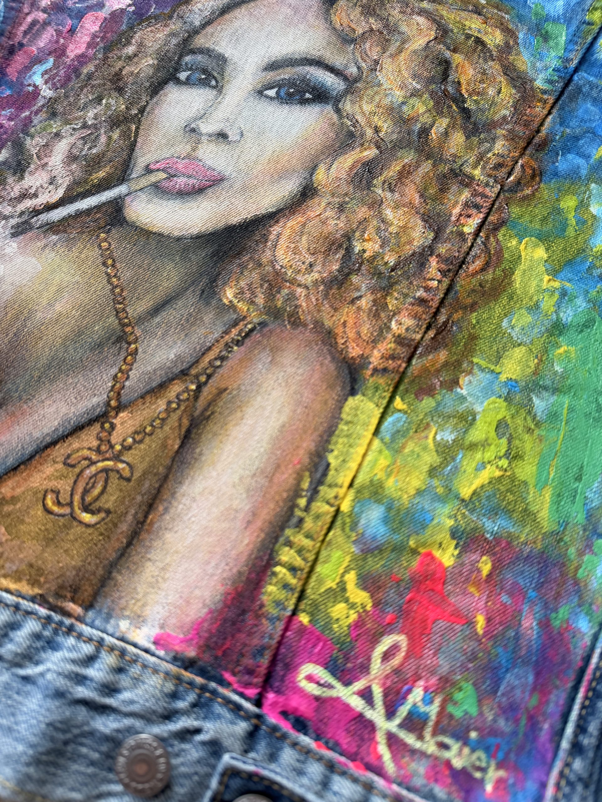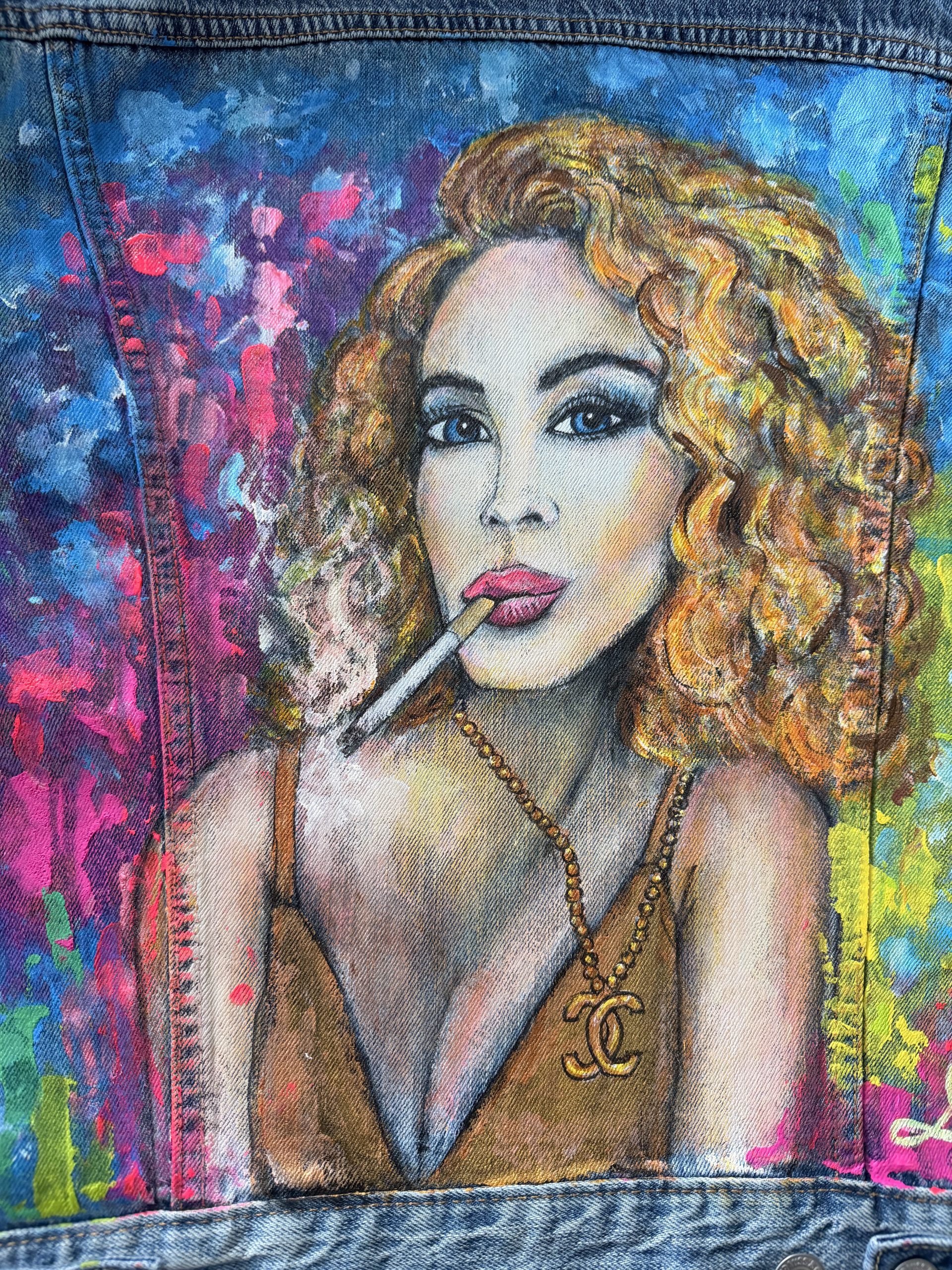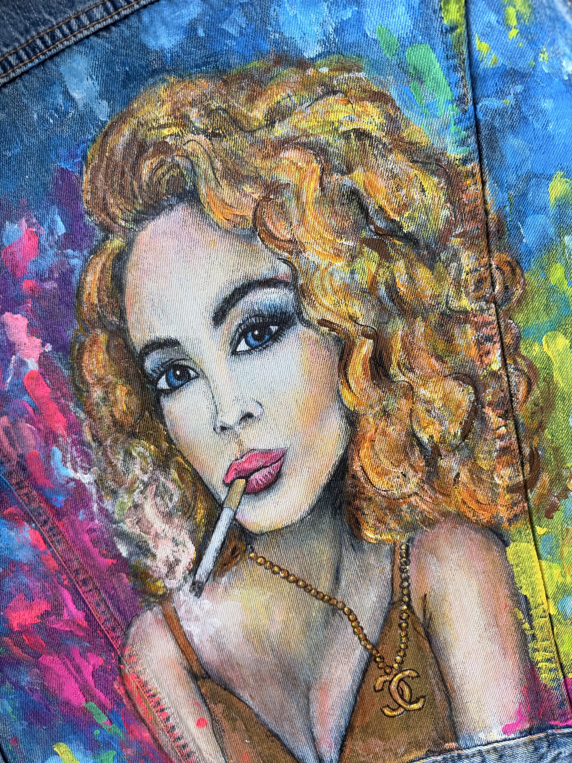 Upcycling meets Art. Eine helle Jeansjacke der Marke LEVI´S in Größe S wurde mit wunderschönen Textilfarben bemalt. Abstrakte verspielte Kunst. Ein Hingucker frei nach dem Motto“ Ein schöner Rücken kann auch entzücken“. Sie ist bis 40 Grad waschbar und ideal für kühlere Sommernächte beim Grillen oder auf einem Weinfest. Für eine wahre Fashionista das ideal Outfit für jede Gelegenheit.