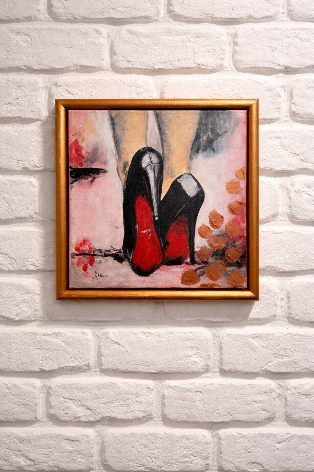 Dieses moderne Bild aus starken Farben veredelt jede Wand. das Gemälde wurde auf einer 30x30cm großen Leinwand mit Acrylfarbe inkl. Metallicspachtelmasse und Glanzfirnis gefertigt. Die tollen Heels von einer Luxusmarke wurde in abstrakter Form verewigt und das Gemälde passt ideal zu meiner Luxus Serie, zu der ich weitere Bilder gefertigt habe. Schauen Sie sich gerne nochmal um.