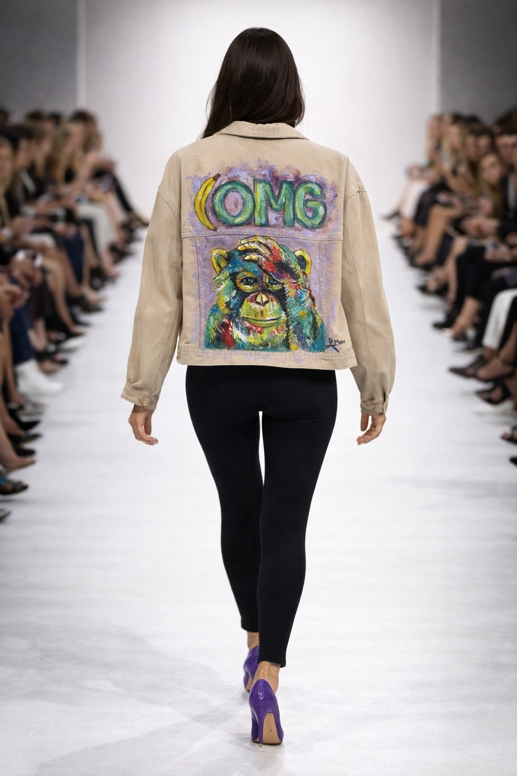 Abstraktes Bärenportrait in Grün mit Rahmen